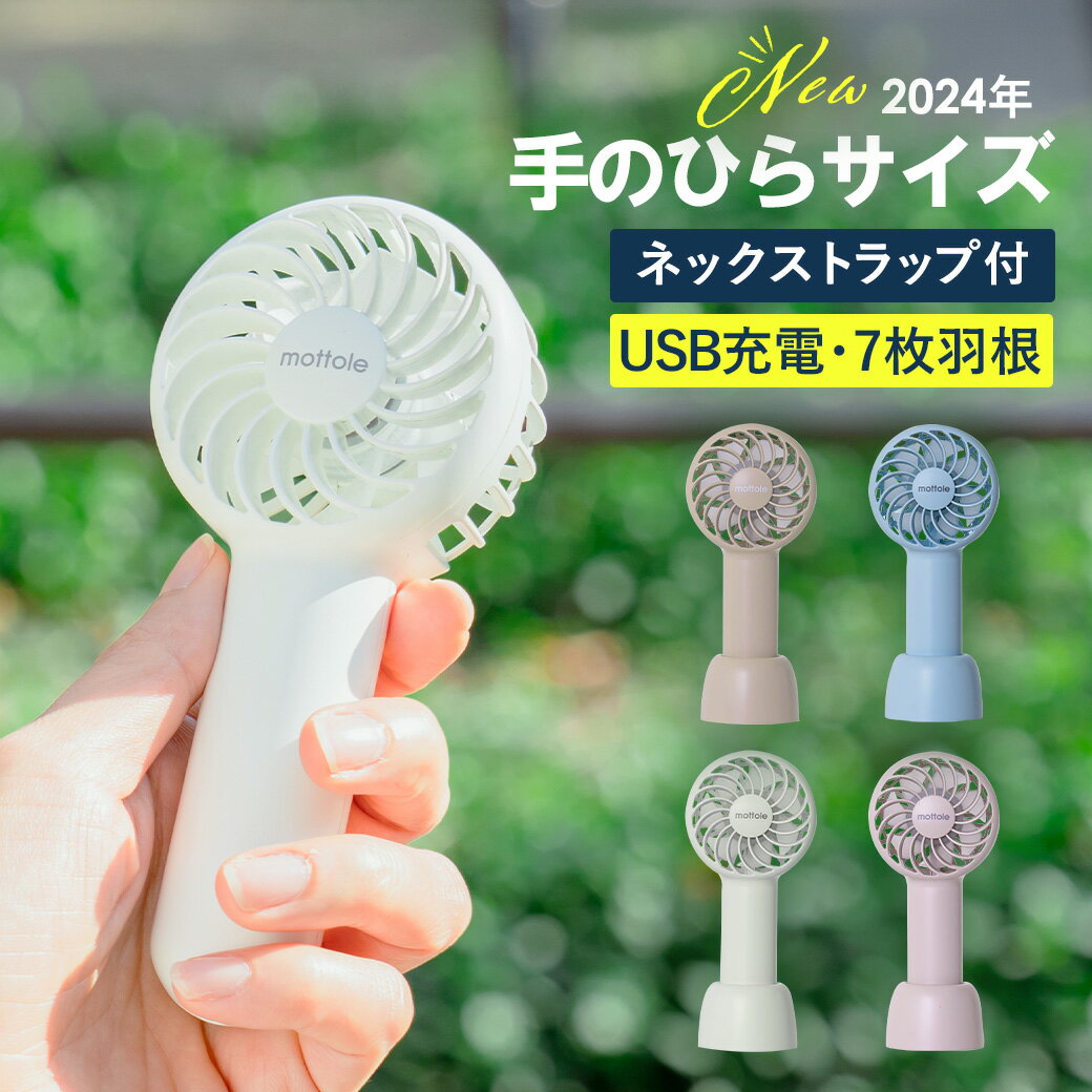 mottole モットル 充電式ミニハンディファン スタンド&ネックストラップ付 MTL-F003