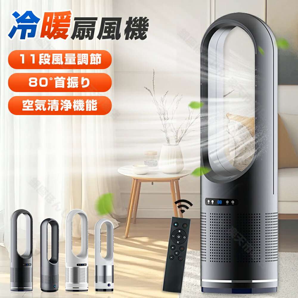 羽なし おしゃれ 夏用冬用 8段階涼風 3段階温風 扇風機 80°左右首振り 切タイマー ファンヒーター リモコン付 静音 タワーファン 家庭用 静音 熱中症対策 冷暖房 サーキュレーター冷風機