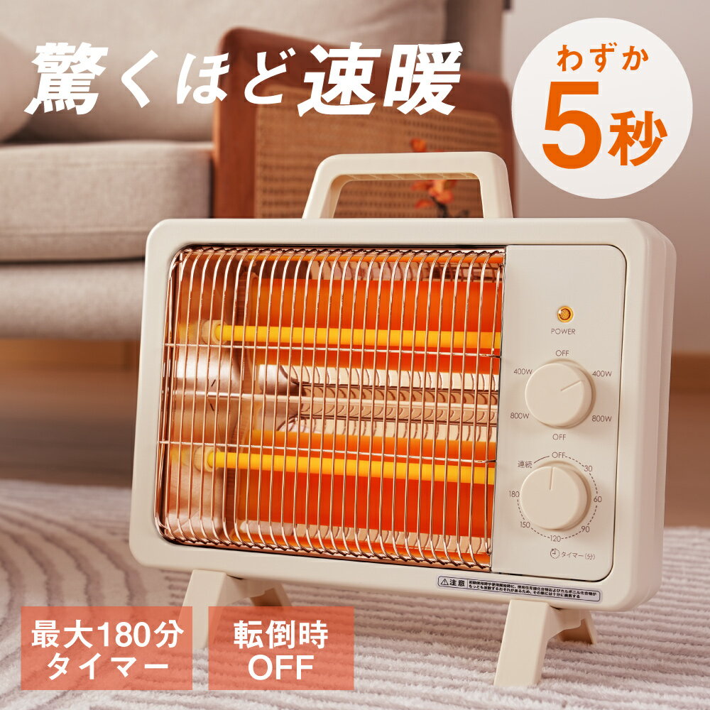 【便利なタイマー&転倒オフ機能付き】 ストーブ ヒーター 持ち運び便利 コンパクト 暖か アイボリー グレー
