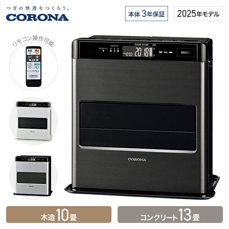 CORONA 暖房 2025年モデル ファンヒーター 黒 白 シルバー リモコン操作 省エネセンサー