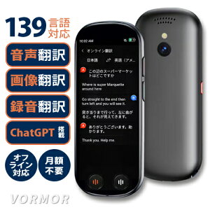 | 多機能AIスマート翻訳機 「VORMOR翻訳機 VORMOR T9 オフライン可 T9」は、これ一台で様々な翻訳機能が利 wi-fi・月額不要 139言語対応 0日という待機時間の長さと、約6時間続けて使えることで、働く時間と旅行がより楽しく。 Type-C充電対応で、約90分でフル充電になります。 製品仕様 |