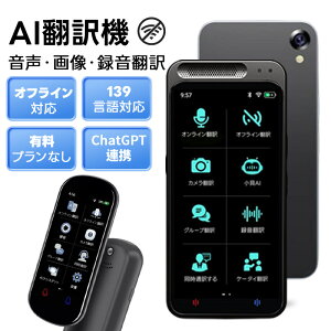 AI翻訳機 月額不要 139言語対応 オフライン可 リアルタイム双方向音声翻訳 画像翻訳 文字翻訳 OCR 録音翻訳 グループ翻訳 通訳機