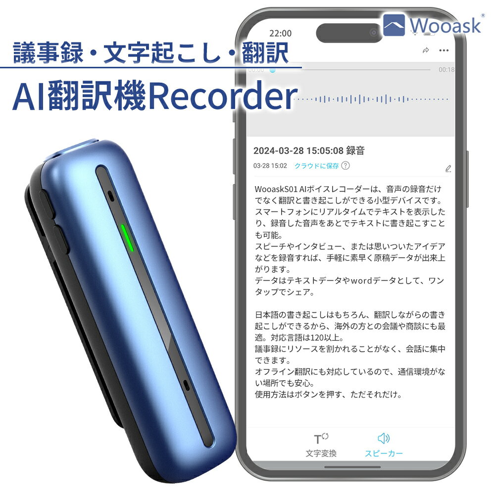 1ボタンで文字起こし・翻訳・録音を 音声データを瞬時に「翻訳」&「テキスト化」AI翻訳ボイスレコーダー オンライン対応モデル