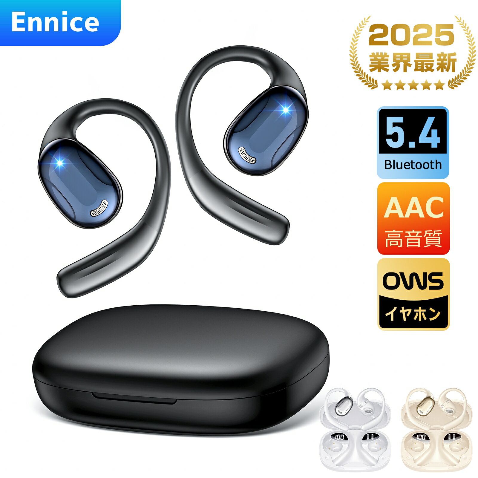Ennice 耳を塞がない ながら聴きOWSイヤホン ワイヤレスイヤホン 音漏れ防止 左右分離 軽量 iPhone Android 低遅延 防水 広互換性 通勤/通学/スポーツ 軽量 圧迫感ゼロ LEDディスプレイ