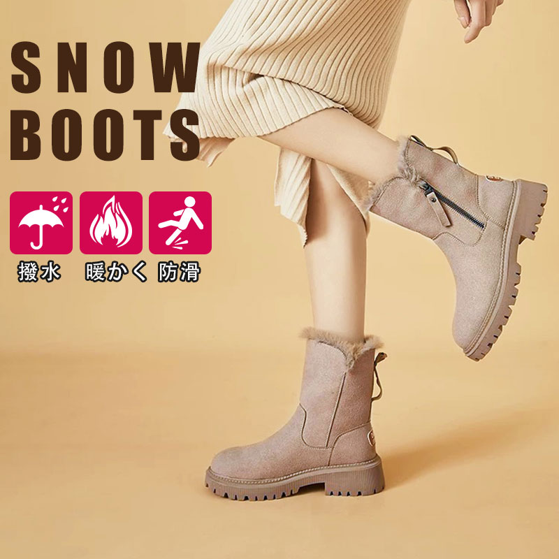雨の日や寒い雪の日でも快適に履ける防寒 あったかブーツ ラウンドトゥ はっ水 柔らかい 歩きやすい やわらかい 防寒