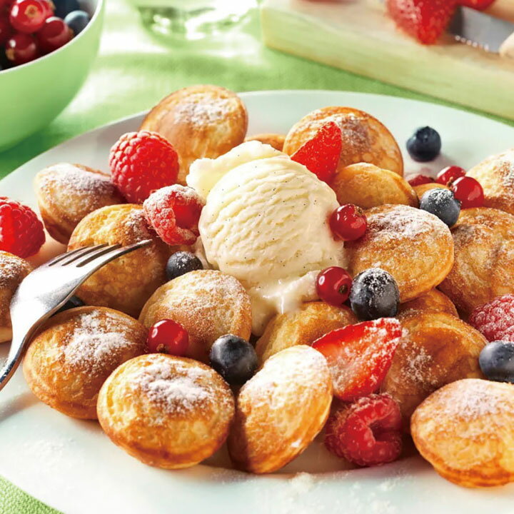 自然解凍するだけで時間が経ってもパサつきにくく、しっとりもちもち食感のミニパンケーキです
