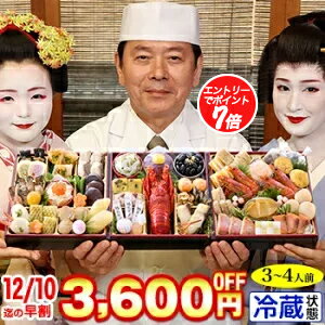 | ■お届けのご案内 お届け予定 :12月2\11月限定最大100%ポイントバック/9日(月) 早割申込締切:12月01日( おせち 早割 予約 2026 おせち料0円(税込) ※日時、価格は変更になる場合がございます。 予めご了承ください。 2025年累計販売数800個突破! ※2025年9月24日時点の実績 |