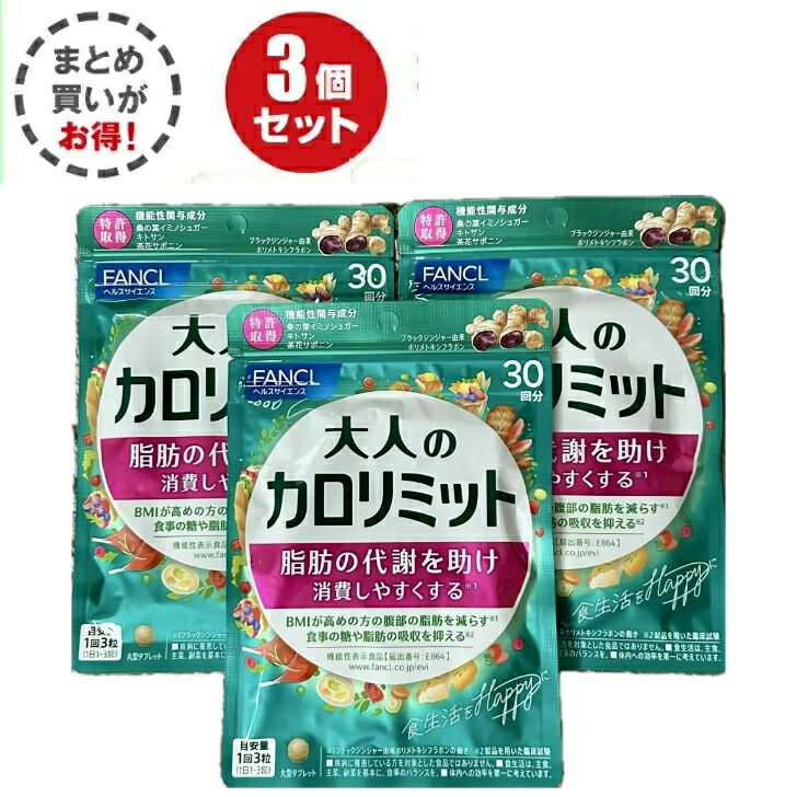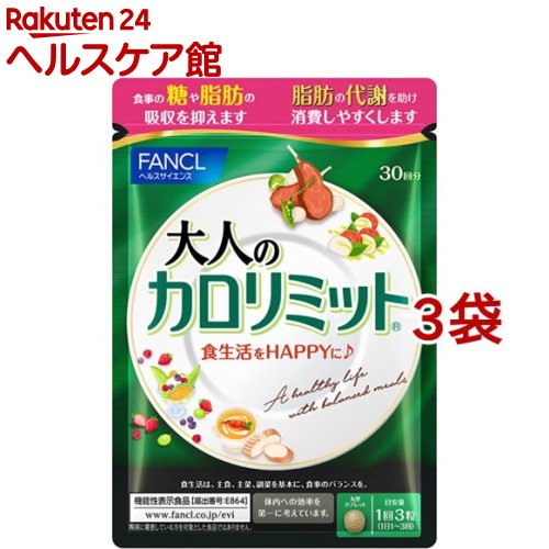 | 代謝も気になる大人をサポートする機能性表ファンケル 大人のカロリミット (30回示食品。 食事の糖や脂肪の吸収を抑える食分×3袋)粒当たり】 桑の葉イミノシュガー:1.75mg、キトサン:100mg、茶花サポニン:0.85mg、ブラックジンジャー由来ポリメトキシフラボン:12mg |