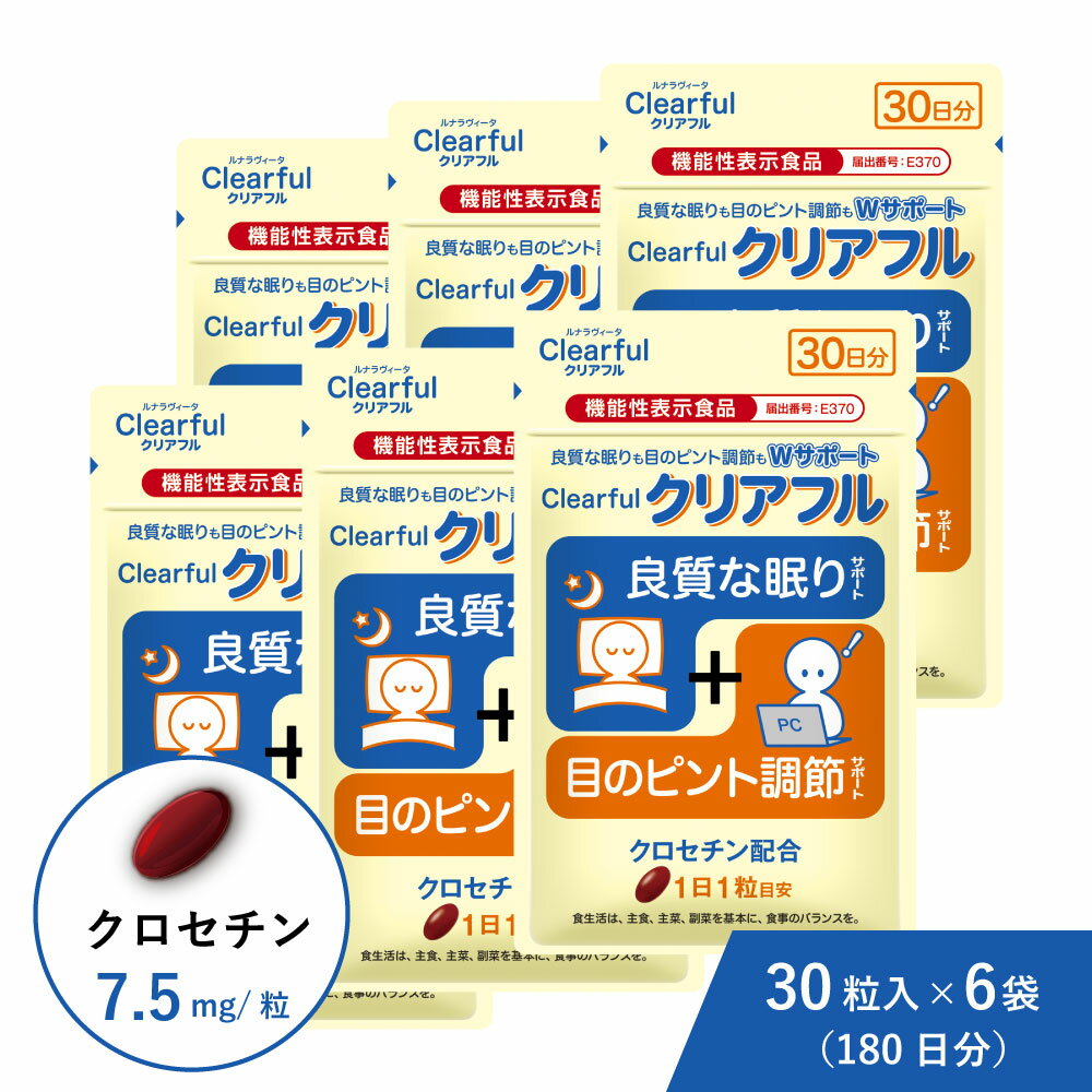 | 「良質な眠り」と「目のピント調節」をWで【公式】 クロセチン クチナシ由来 お得サポート 1粒(320mg)当たり クロ クリアフル 6袋 180日分 機能性表けて保存してください。 原産国 日本 MADE IN JAPAN 広告文責 株式会社エル・ローズ 0120-492-316 |