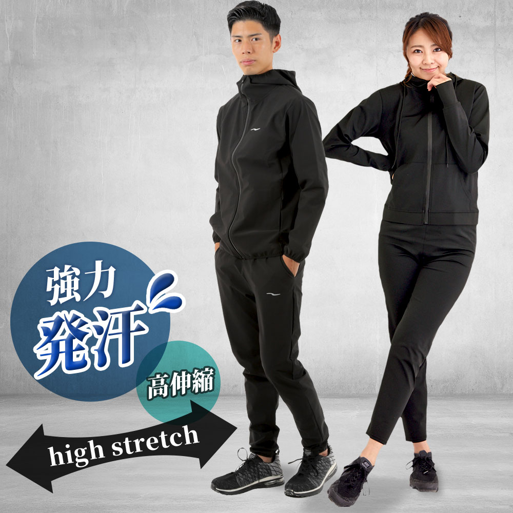 発汗力No1 スポーツトレーナーが考えた大量発汗 stan サウナスーツ スリムフィット 上下セット 洗濯可 ジョギング ユニセックス