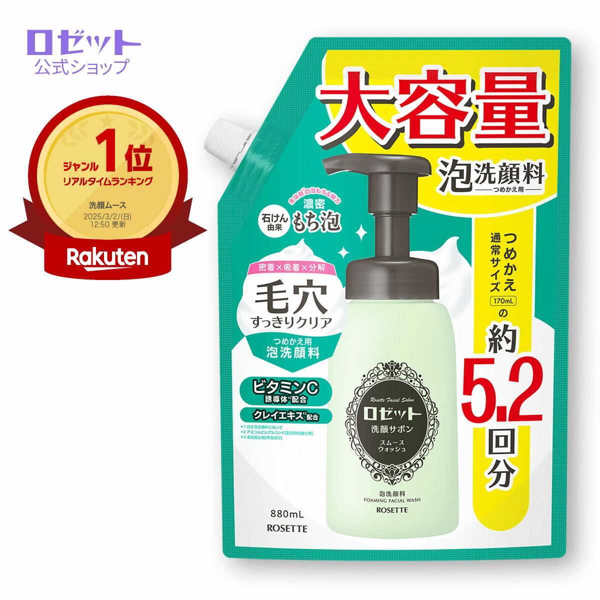 | \EC限定!お得なつめかえ大容量サイズ/【泡で出る】 泡洗顔フォーム ロゼット洗 つめかえ通常サイズ(170mL)の約5顔サボン スムースウォッシュ つめかえ用姬婷洁面慕斯rosettefacialsabonfoamingwashsmooth49016965006752025SSボトル本品 その他商品一覧 > |