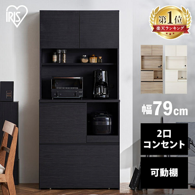 食器棚 スリム 一人暮らし おしゃれ キッチンキャビネット キッチンラック ダイニングボード レンジ台 扉収納 引き出し 収納 組み立て 木目調 台所 家具 アイリスオーヤマブラック