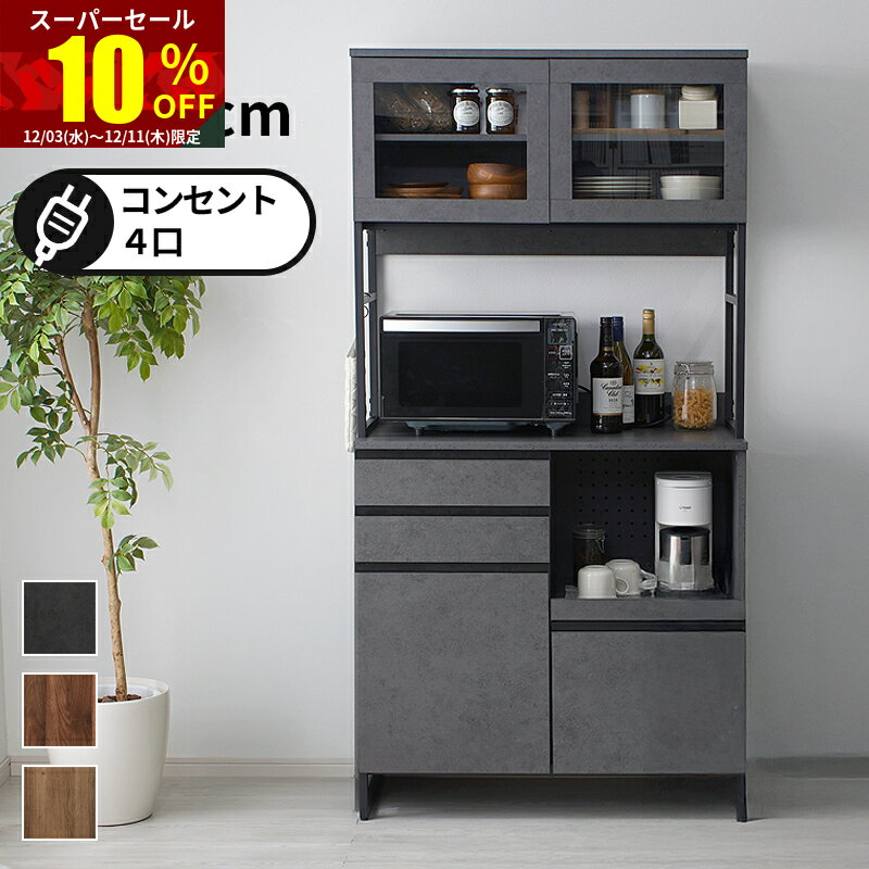 食器棚 レンジ台 幅90cm 高さ179.5cm キッチン収納 レンジボード 大型レンジ対応 キッチンキャビネット キッチン ラック 棚 収納 おしゃれ