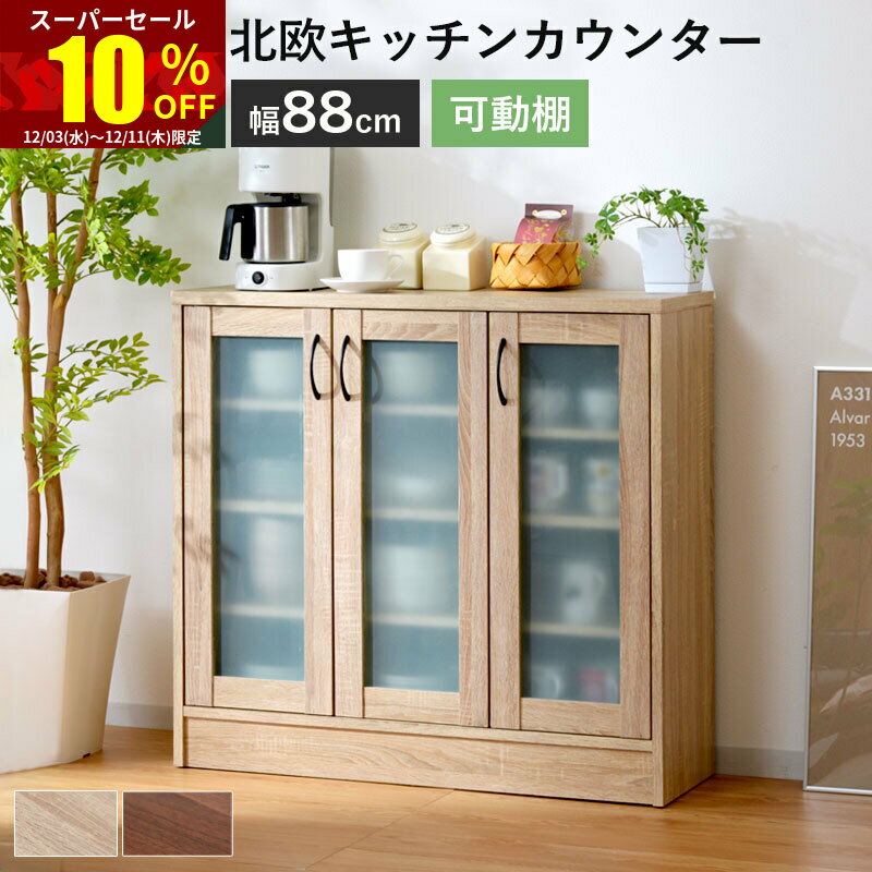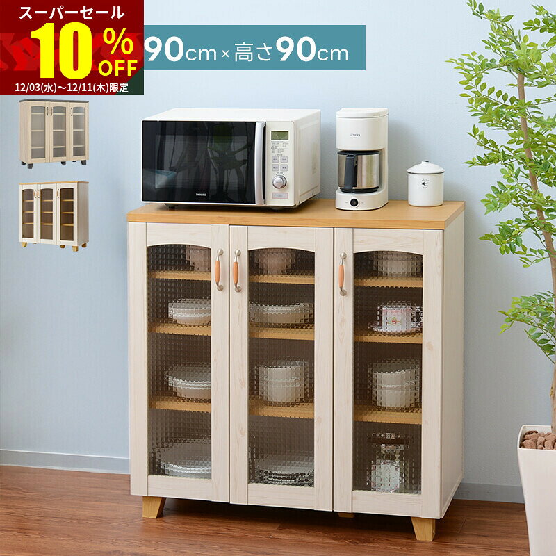食器棚 ロータイプ 幅88cm 高さ82cm スリム 収納家具 キッチン 収納 食器収納 キッチンボード ローボード 台所収納 お皿収納棚 コンパクト アンティーク風 ハンドメイド調 北欧風 木製調
