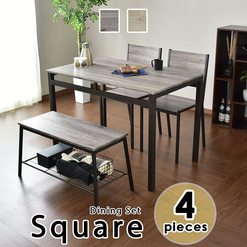 ダイニング セット ダイニングテーブルセット ダイニングテーブル カフェ風 ベンチ 4人掛け テーブル下収納 ソファ 80 ナチュラル 可愛い 天然木 イス 4人 コンパクト gninid ptev