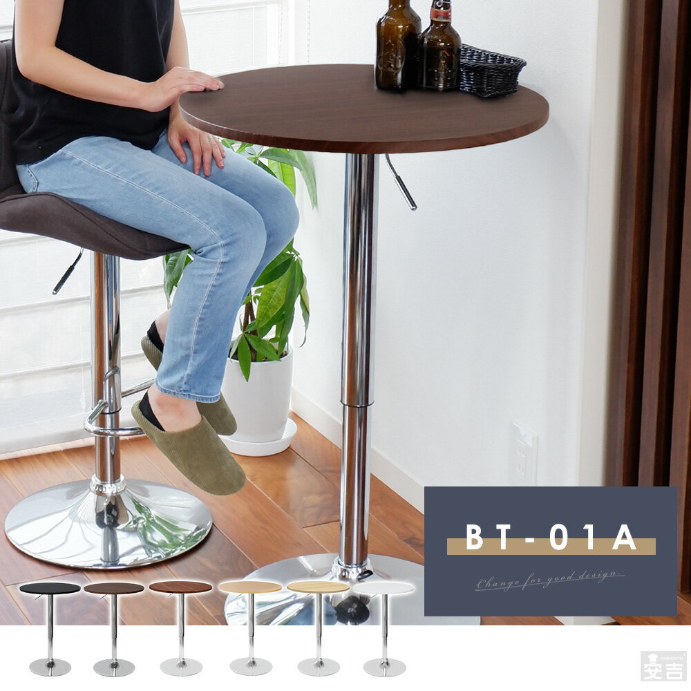 レビュー書いて1000円クーポン進呈中」昇降式バーテーブル40cm幅(2色有)ちょっと使いのテーブル、昇降できて高さ調整!バーテーブル 昇降式 丸型 ラウンド