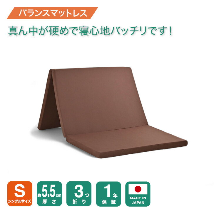 大特価 腰を支える 5.5cm 55mm シングル マットレス 三つ折り 折りたたみ 国産 日本製 シングルマットレス バランス 軽量 送料無料 快眠 寝具 腰痛 枕 敷布団 福袋 敷き布団 圧縮梱包
