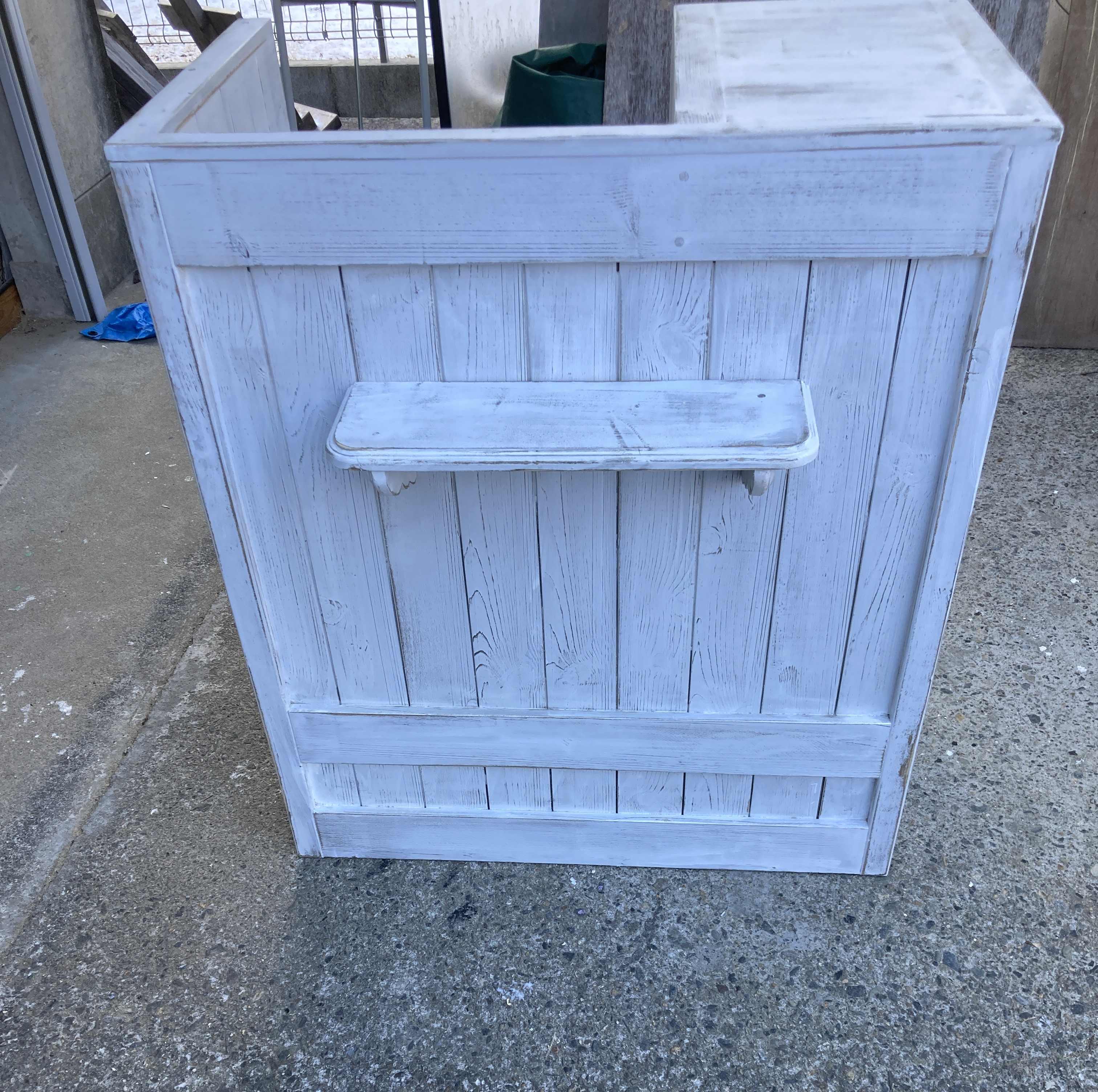 | 商品名 カウンター 説明 【外寸サイズ】レジカウンター H110 木製 3方枠型 約 幅96〜97 高さ110 奥行き4 板張り 引き出し ヴィンテージ ナチュ用の小物や雑貨はつきません。 *ハンドメイド家具をご購入にあたってのお願いと注意事項がございますので、下記の【About us】を必ずお読みください。 |